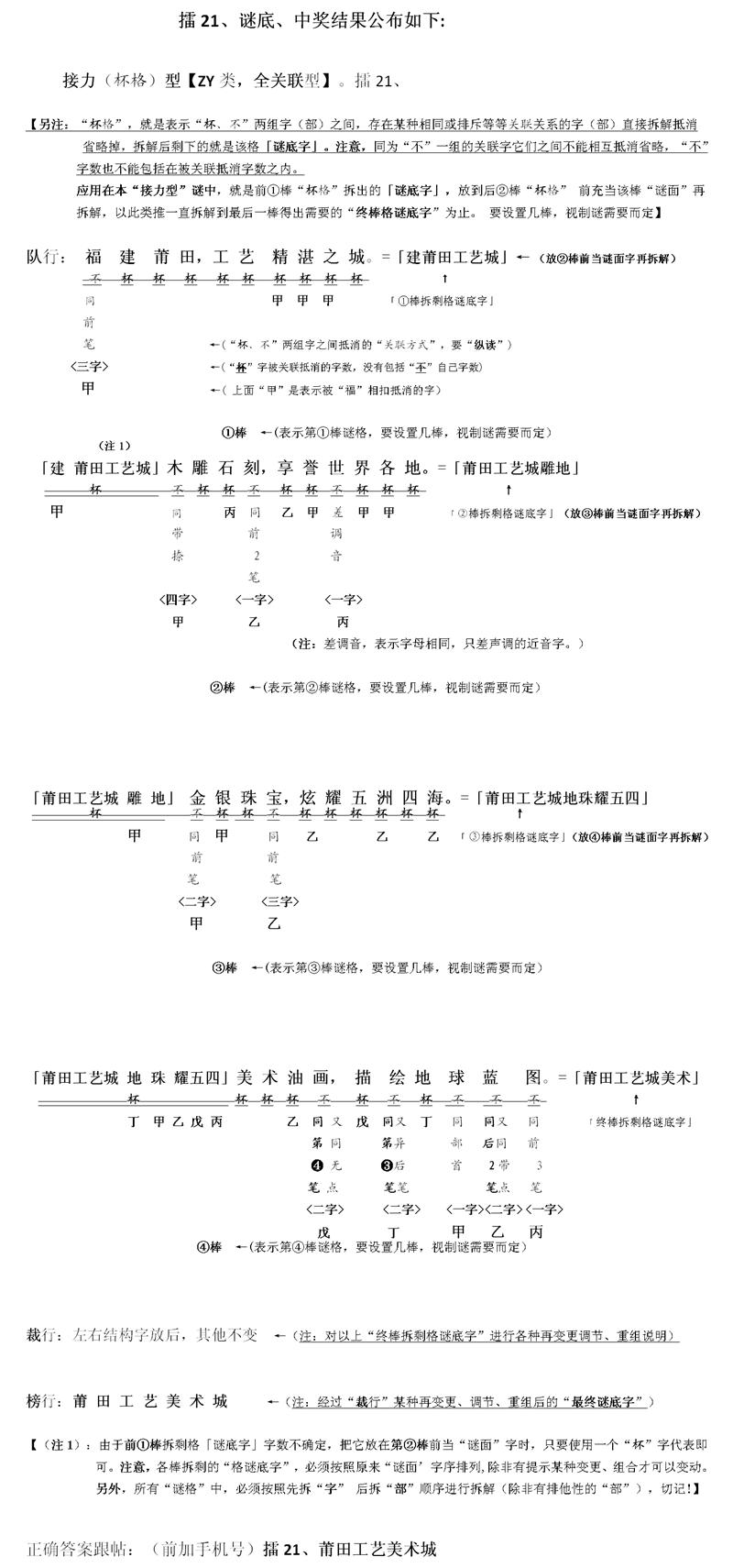 第一名:甲级奖谜书(原始分红式股东),获奖人,蔡仰芝,广东省广州市花都区新华街道人。手机1353****045。(从“传擂52、”中乙级升级到本“擂21、”中甲级)