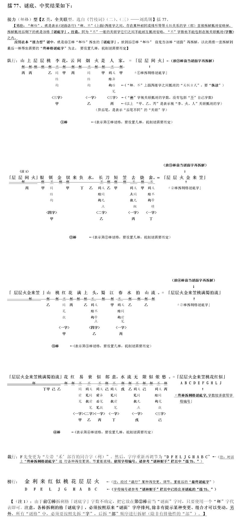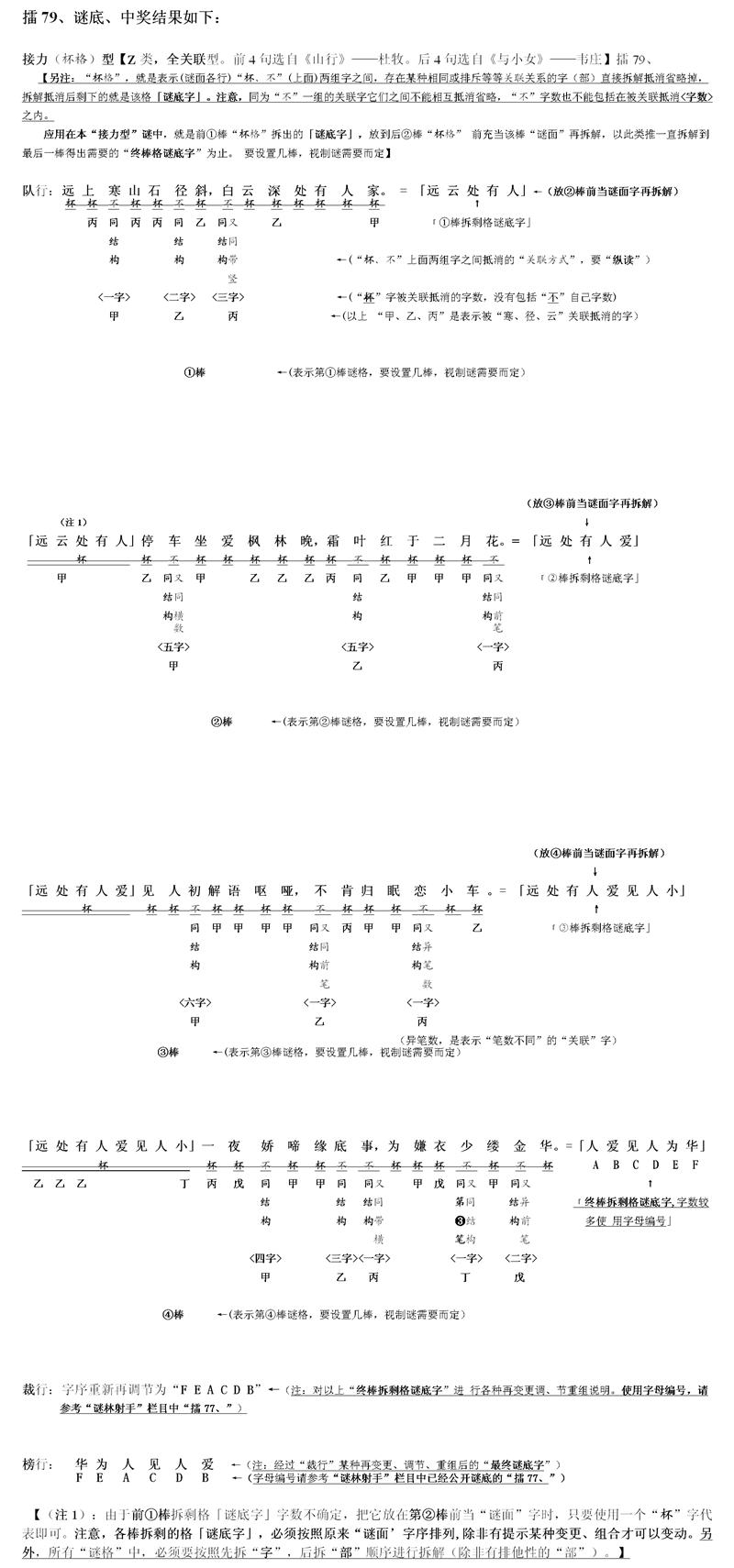 其中只有两位谜友猜了“明一”两个字,这也是当初本人想要设计的“谜底”,不小心把“起”与“期”“近音”打成“同音”,就把它当做“虚假相扣”。只要谜友能猜出“明起一”就算猜中。